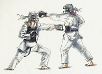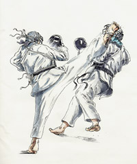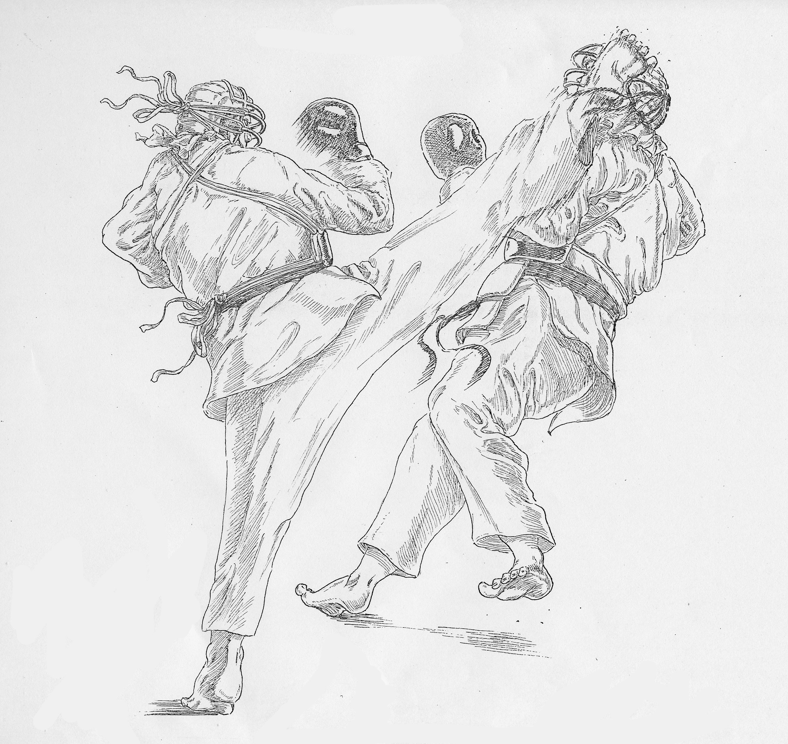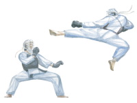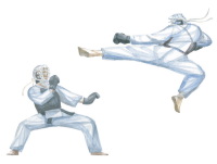 跳び蹴りイラスト Fight.zip PSDデータをIllustratorで配置(120MB)。 日本拳法連盟の直轄道場「池上道場」のために描き起こされたイラスト。 跳び蹴りしているのは、立正大学OB・佐藤彰倫氏(昭和35年卒)がモデル。 モノクロ写真やイラストがパンフレットなどに多用されていたので、年配の方は記憶にあるかと。 |