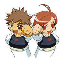 おともだちイラスト(2人) 2003年 u2003c-PSD.lzh Adobe Photoshop 7.0形式(1743×1182ピクセル) u2003c-BMP.lzh WindowsBMP形式(600×407ピクセル) 2003年度の東日本少年選手権の記念グッズ(うちわ)用に描き起こされたイラスト。 |