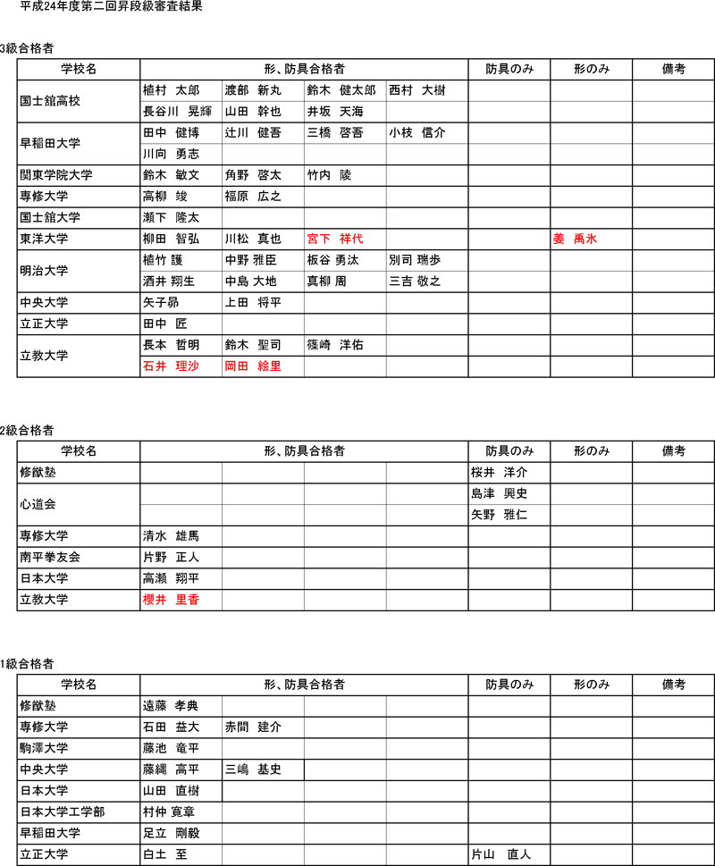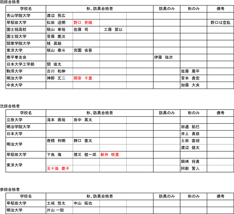 1970年01月01日(金)付※允許状・認定証交付申請なき場合、合格した段級位は正式には認められません。