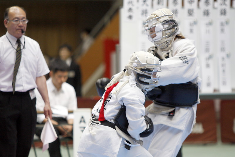 | 日本拳法第28回全国大学選抜選手権大会 ブロック対抗女子団体戦、西日本・中道vs中部日本・桑原。中道の胴突き(一本)。 撮影:Inno |