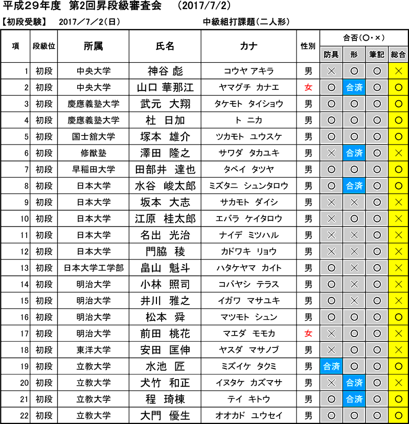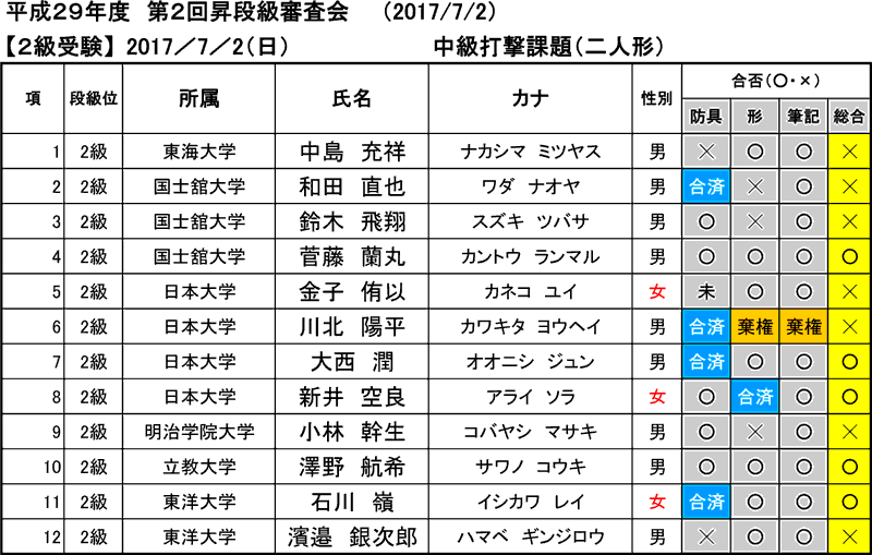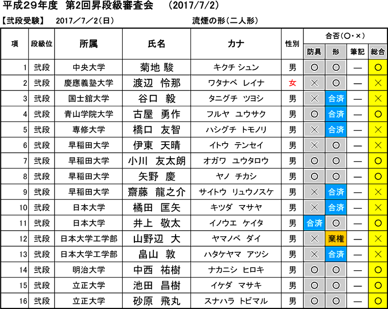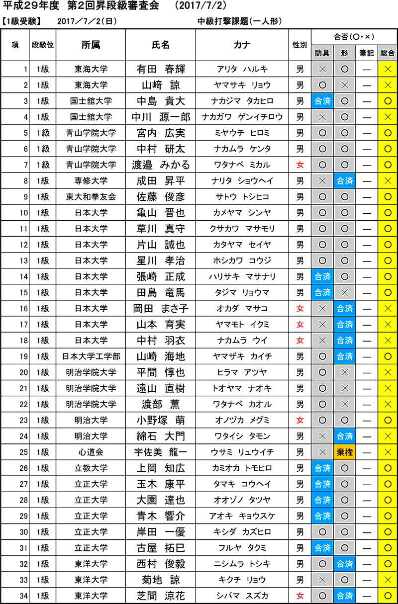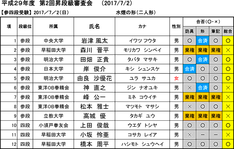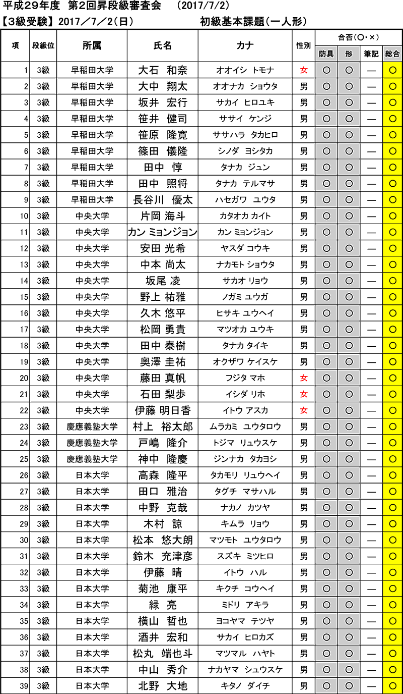 2017年08月20日(土)付※允許状・認定証交付申請なき場合、合格した段級位は正式には認められません。