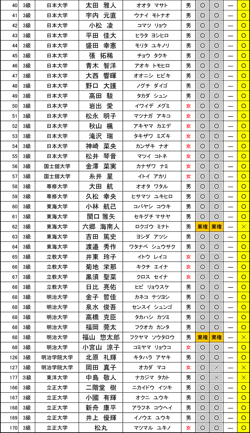 ※地区審議会所管分の「級の合格者」は、地区審議会の指示に従い、認定証を交付申請・認定料振込をすること。