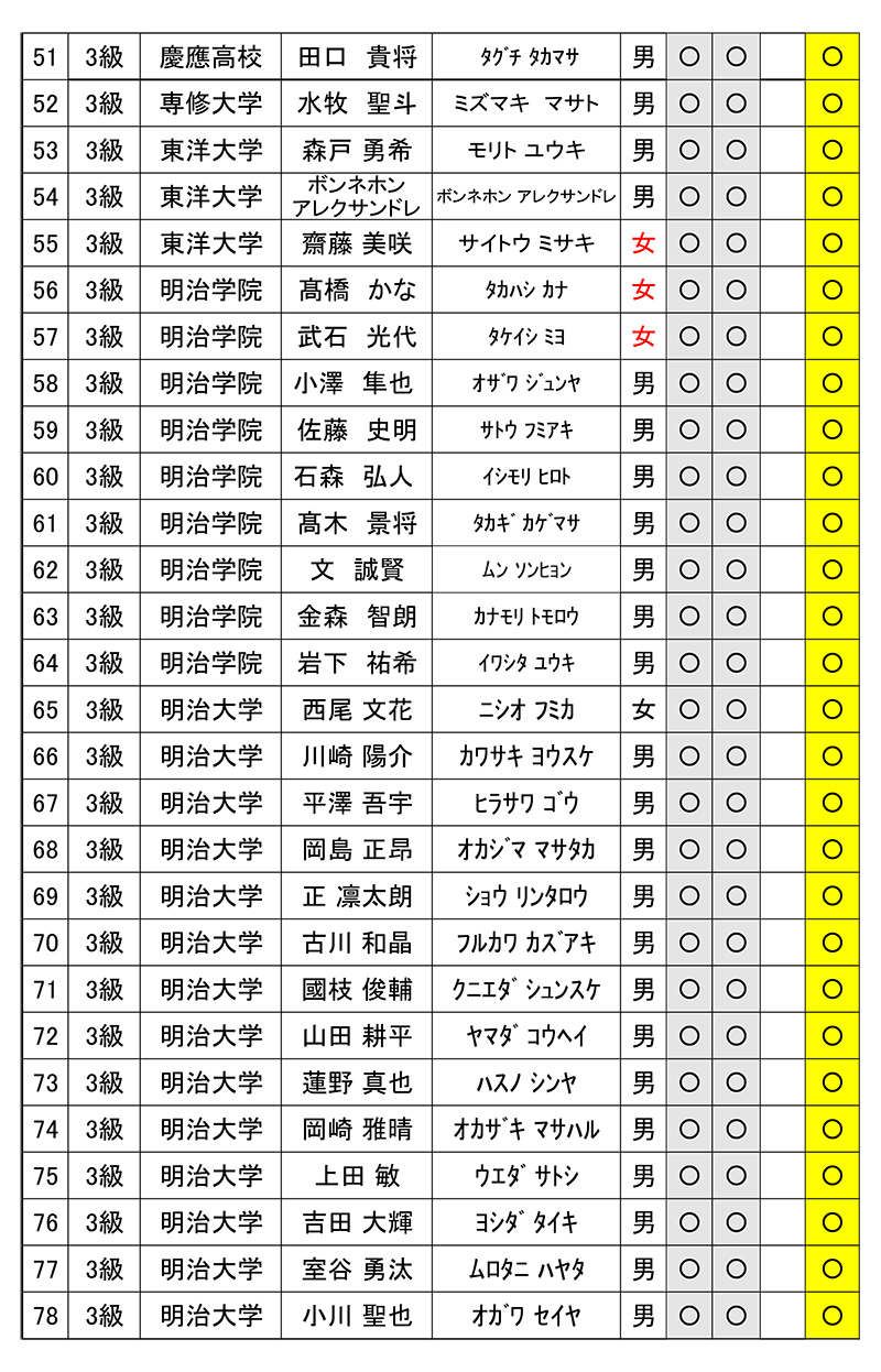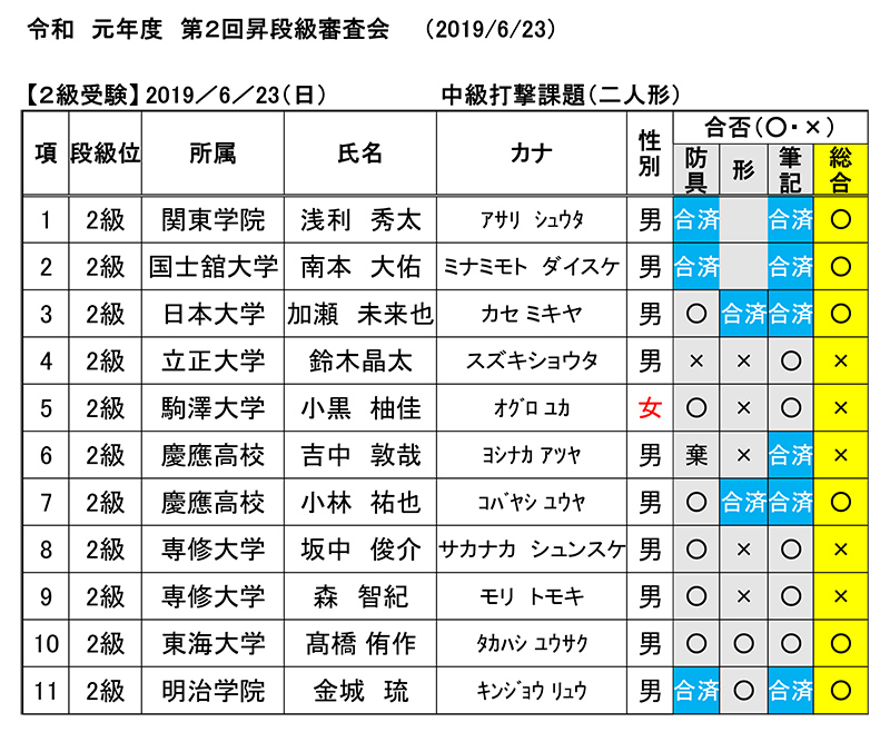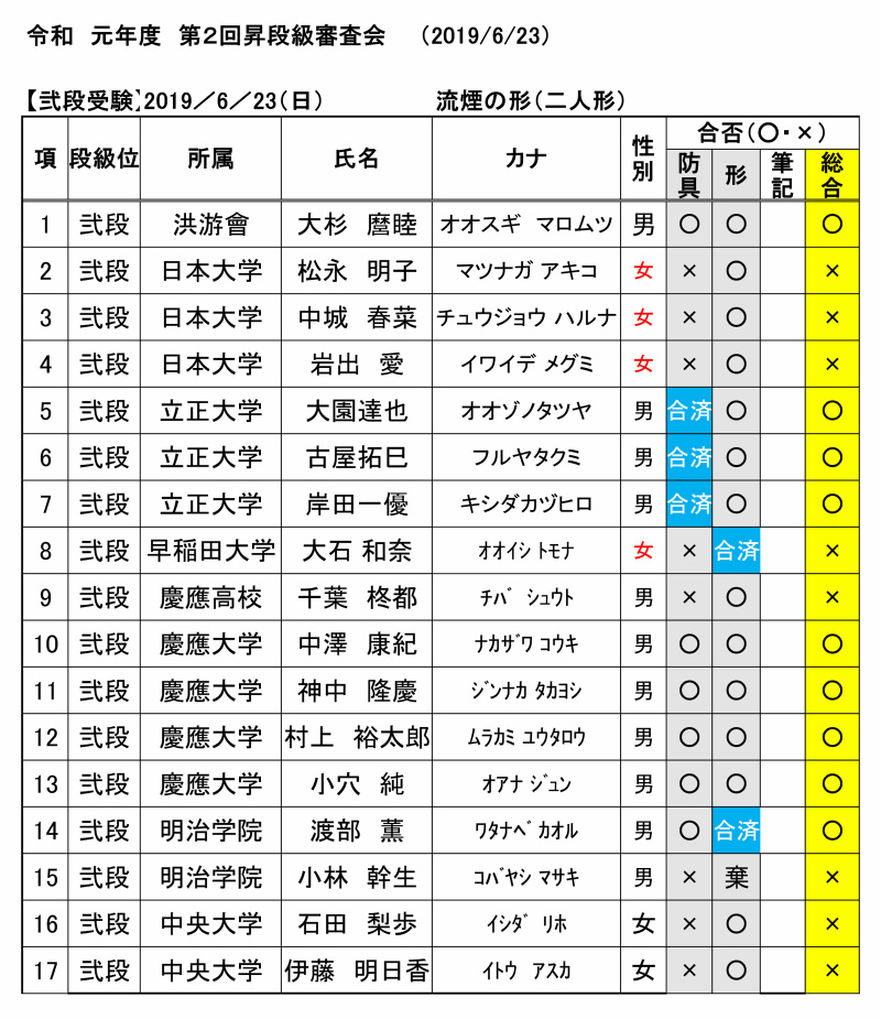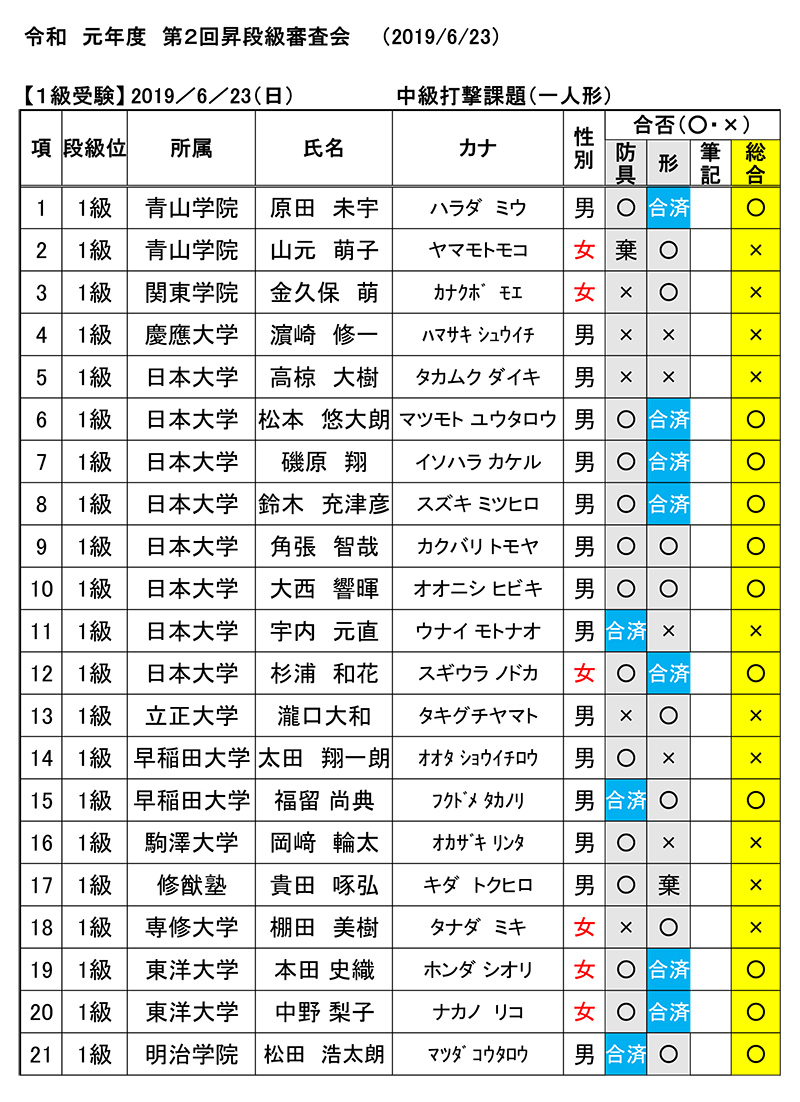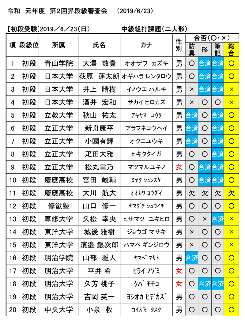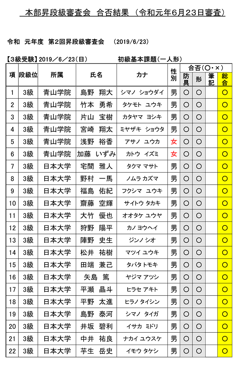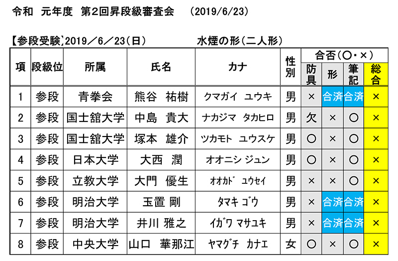 2019年08月20日(金)付※允許状・認定証交付申請なき場合、合格した段級位は正式には認められません。