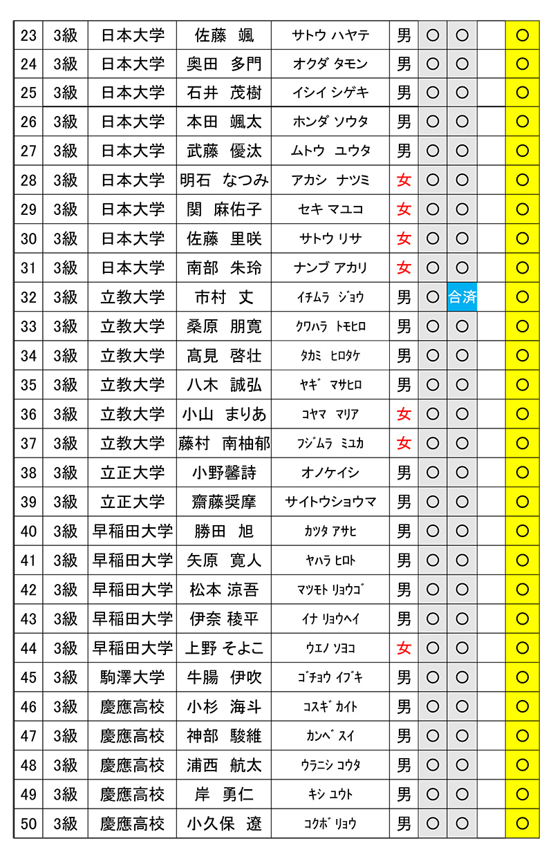 ※地区審議会所管分の「級の合格者」は、地区審議会の指示に従い、認定証を交付申請・認定料振込をすること。