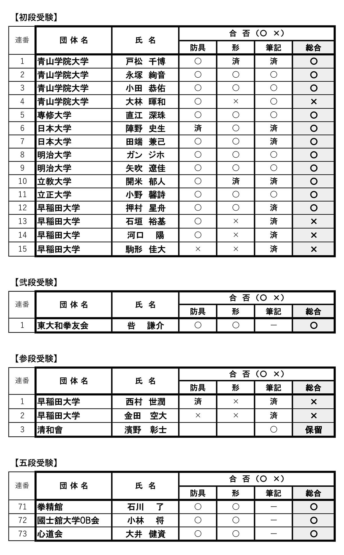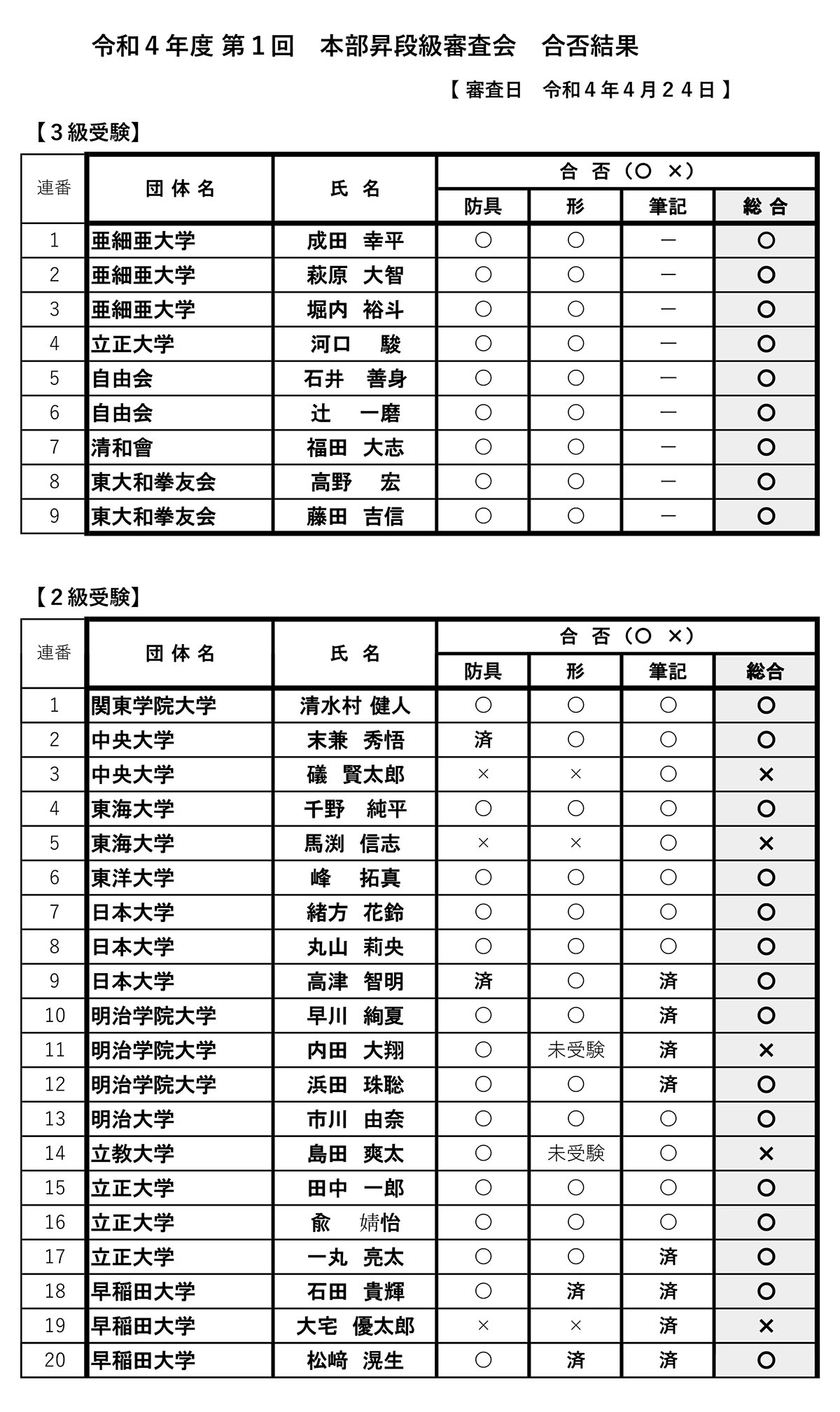 令和4(2022)年5月20日付※允許状・認定証交付申請なき場合、合格した段級位は正式には認められません。