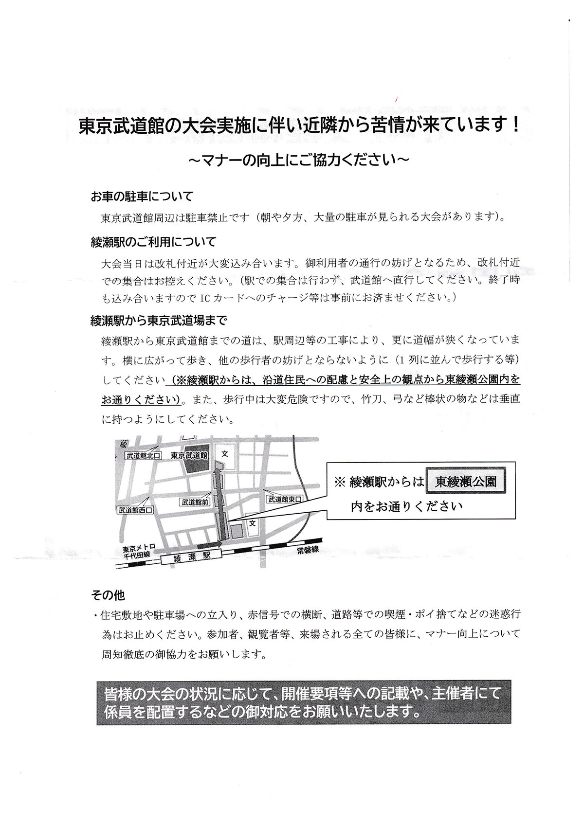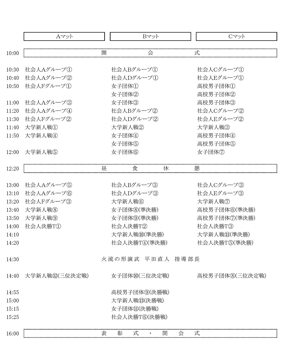 タイムテーブルおよび東京武道館からの注意事項