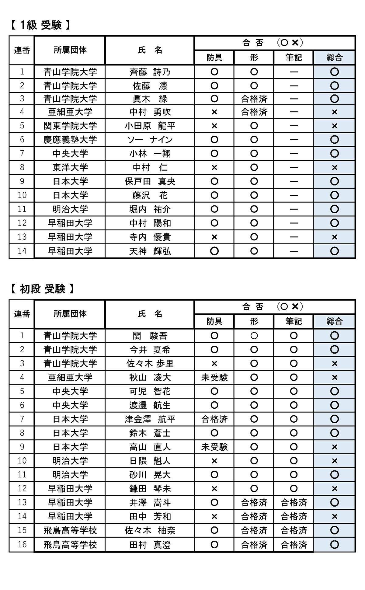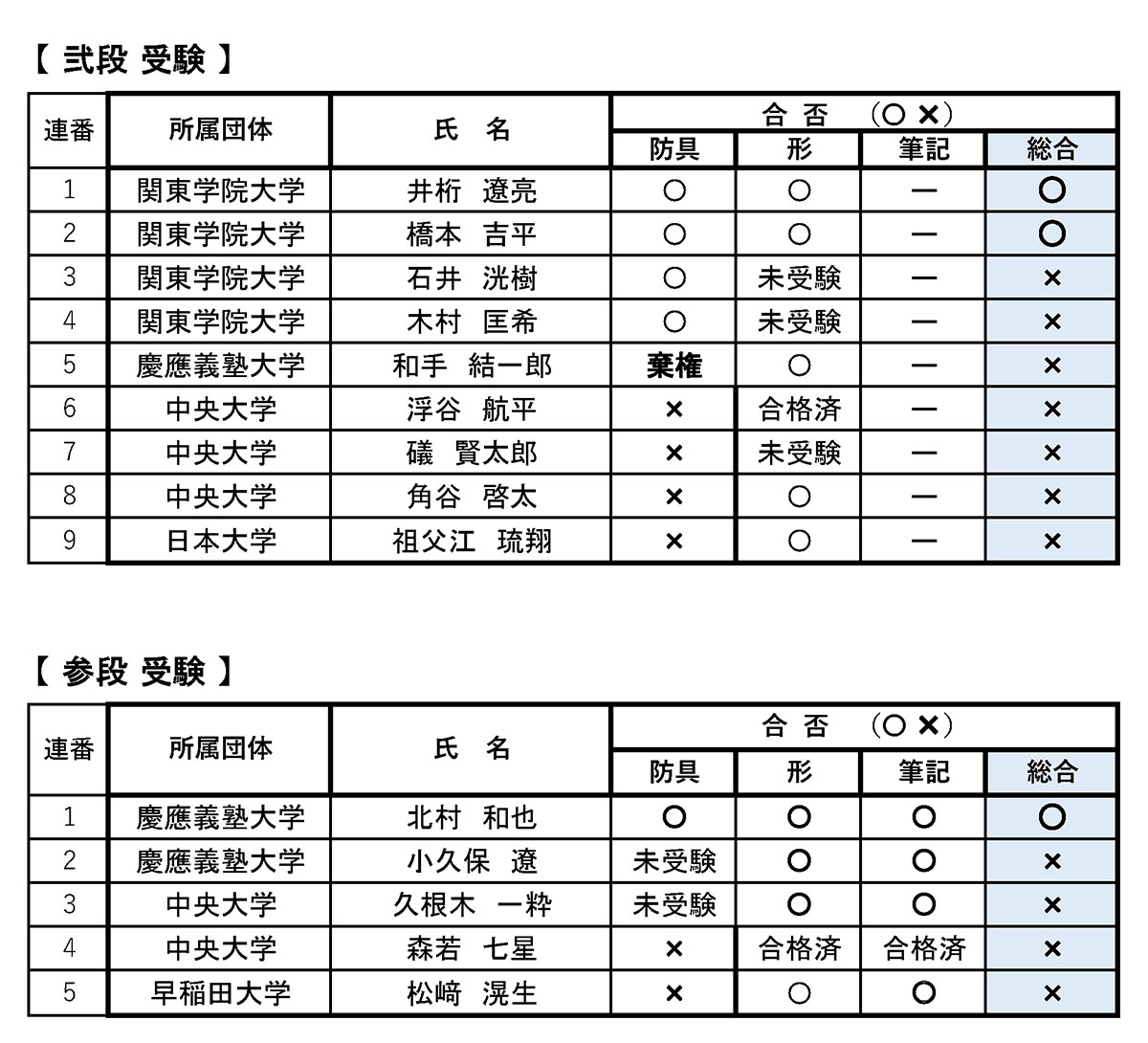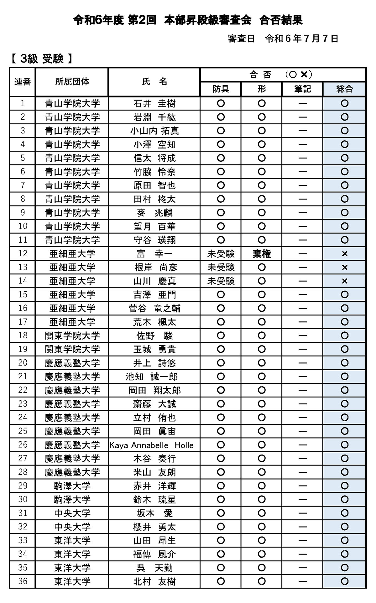 令和6(2024)年8月20日付(予定)※允許状・認定証交付申請なき場合、合格した段級位は正式には認められません。