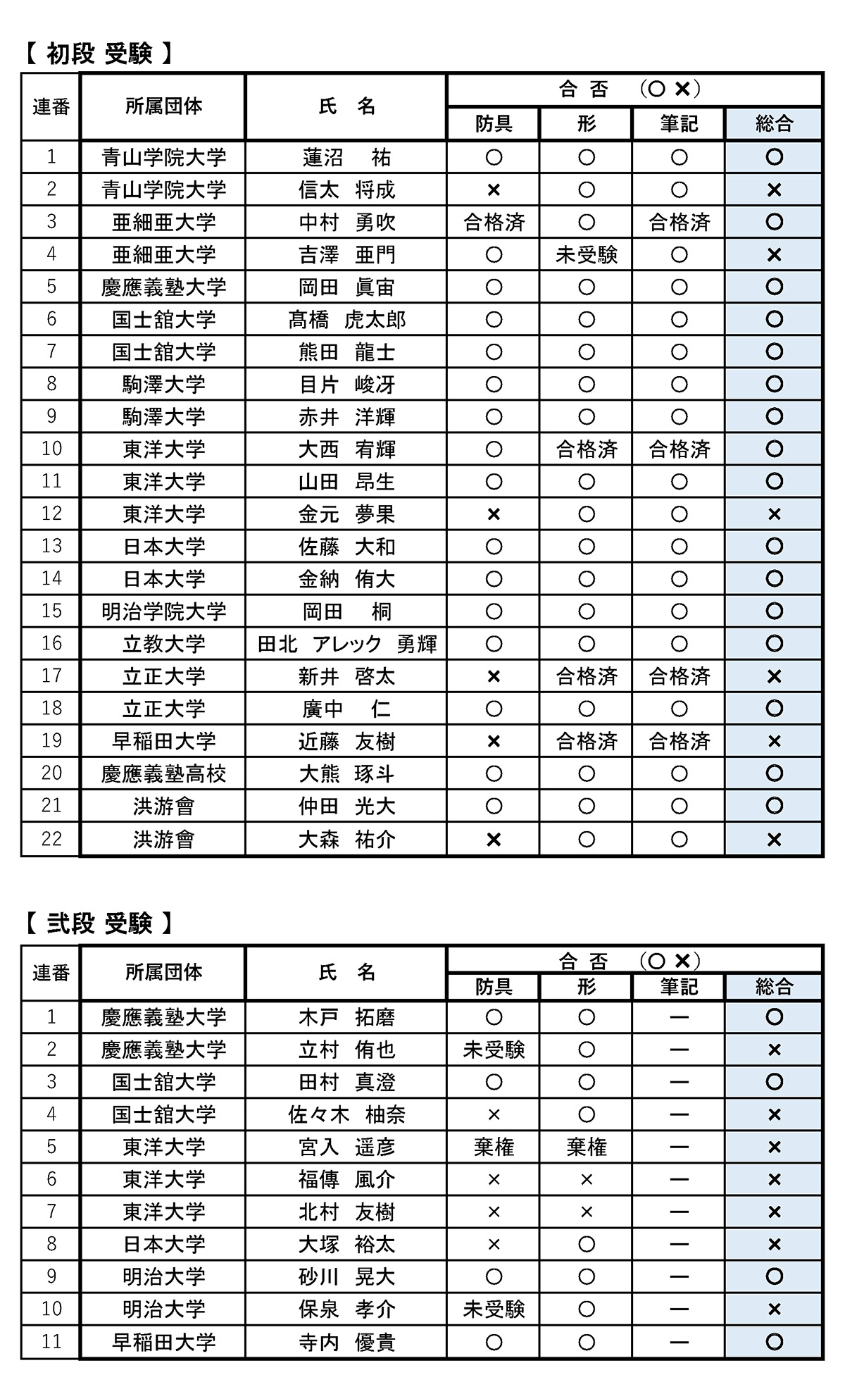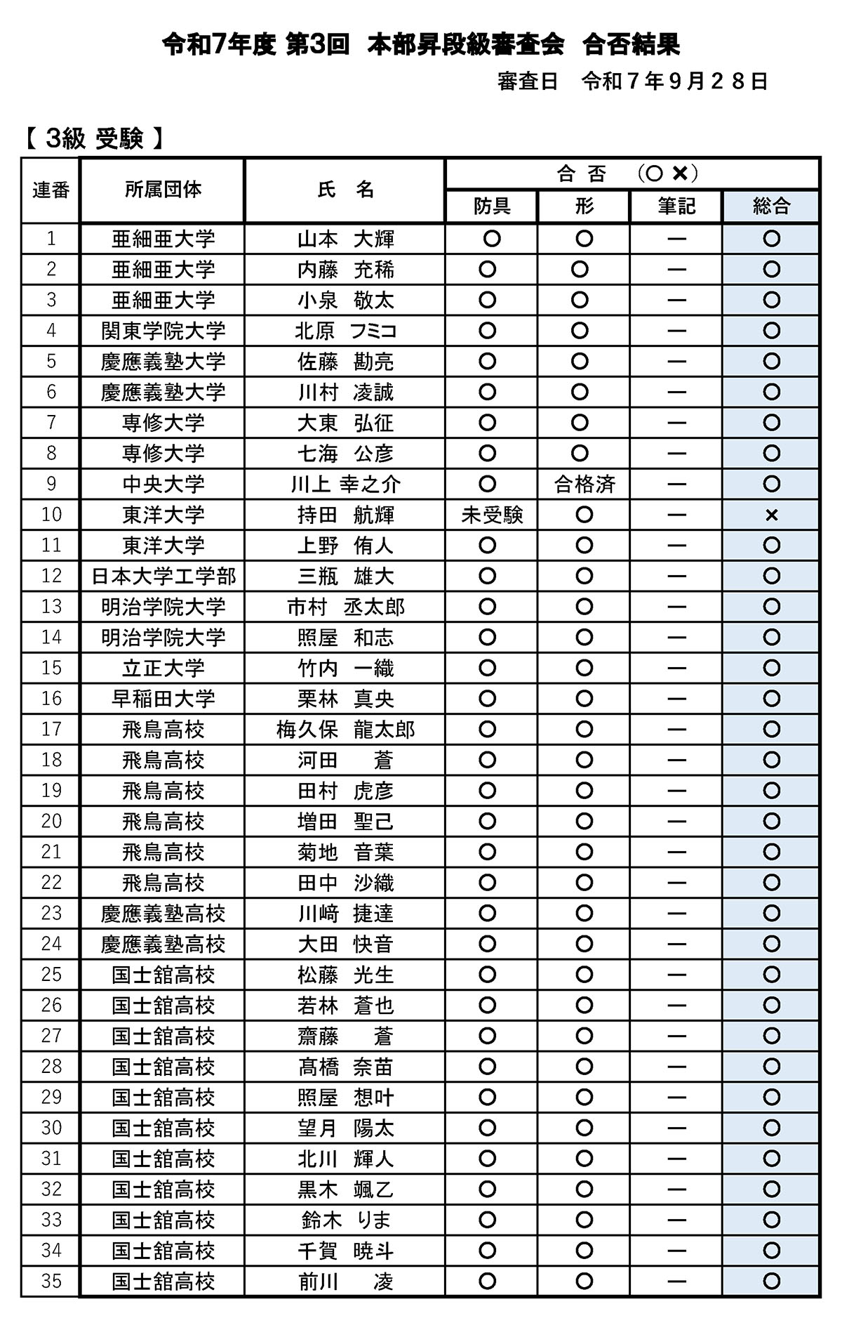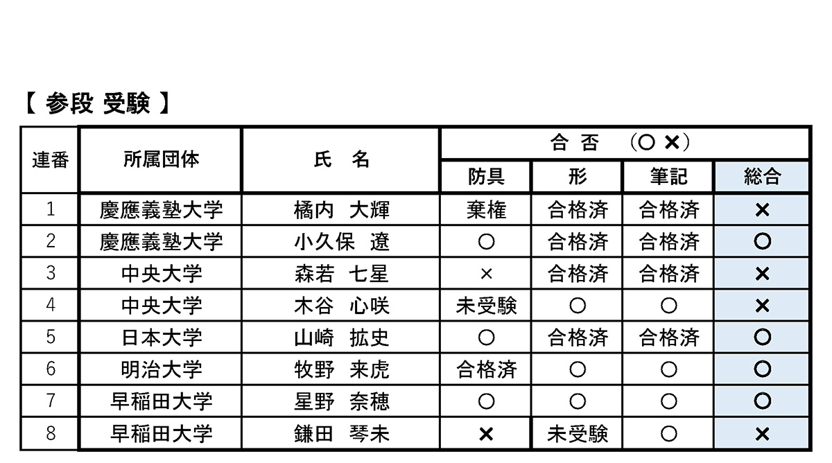 令和7(2025)年11月20日付(予定)※允許状・認定証交付申請なき場合、合格した段級位は正式には認められません。