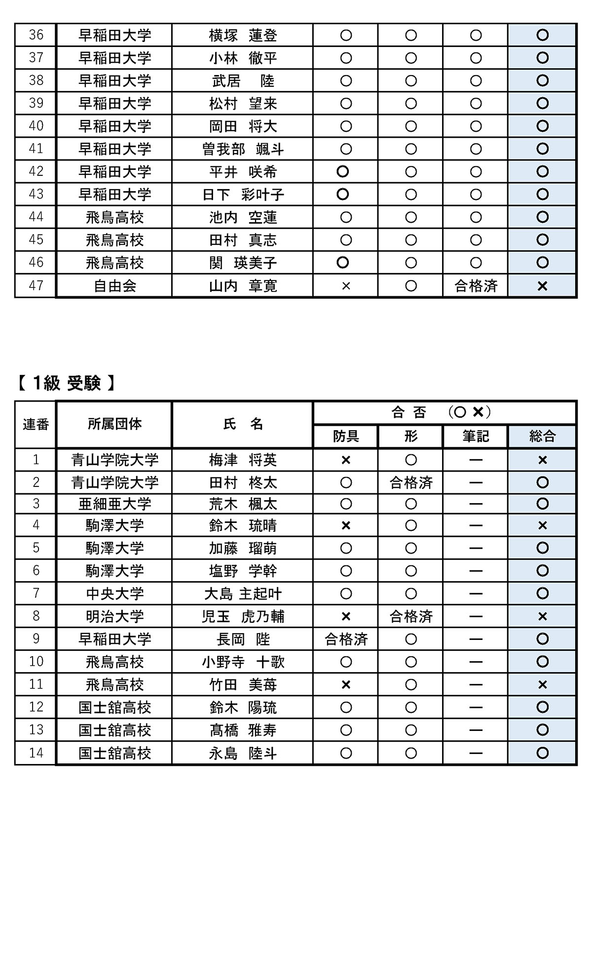 1.合格者について