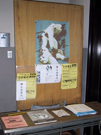 | ↑拳法場近くの掲示コーナーにも、多くの勧誘ポスターが貼られている。その中に埋もれている拳法部のポスター。もっと目立つものにしなければ……。 |