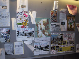 | ↑掲示板には、ポスターやチラシだけでなく、なんと大会のパンフレットまで置かれている! 誰が読むのかは謎だが、にぎやかで楽しい。 |